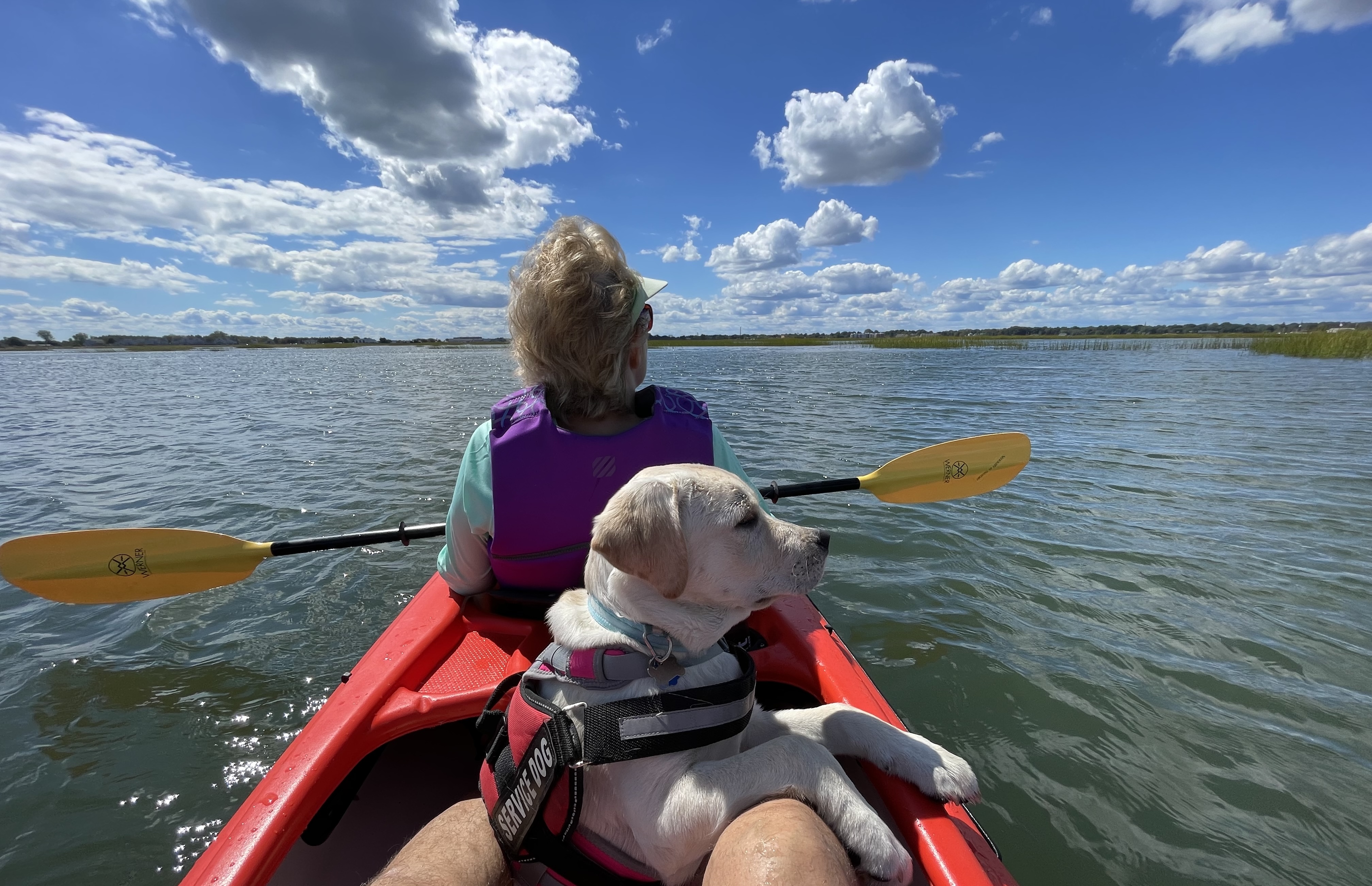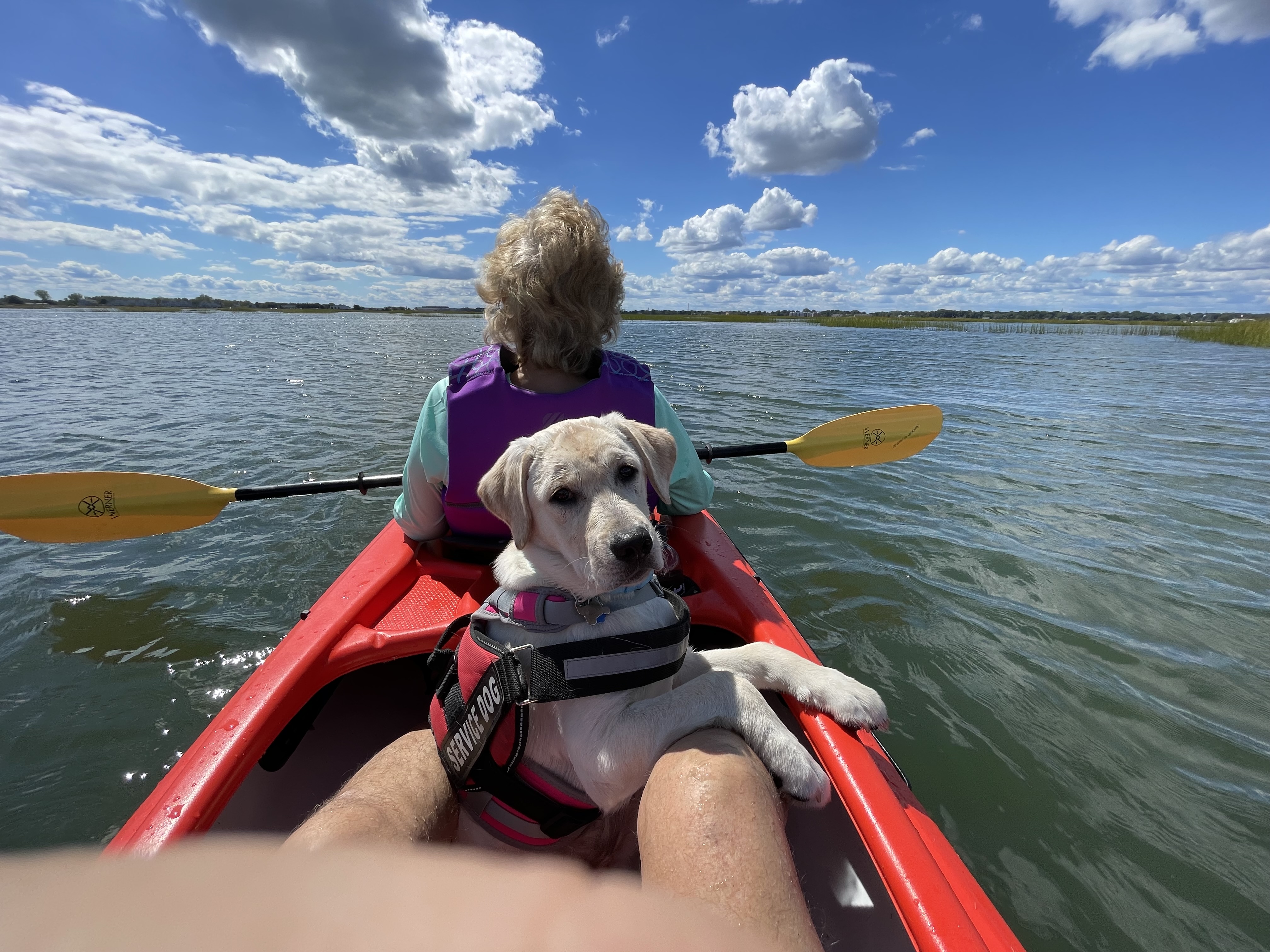 Callie is loving her kayak ride in the fresh air and sunshine.