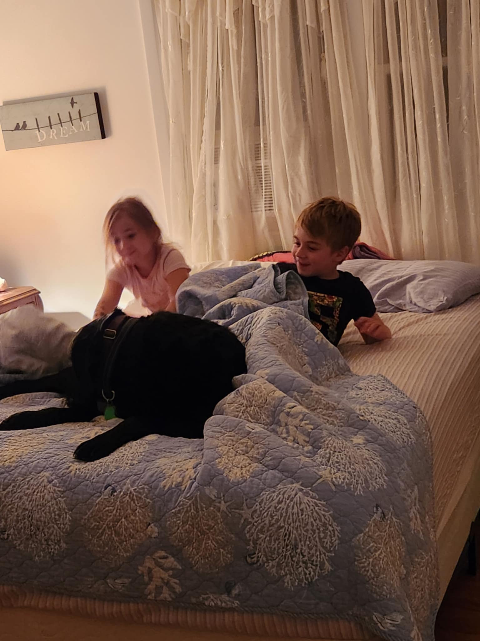 Our grandchildren were very careful while visiting Bella and her new pups.