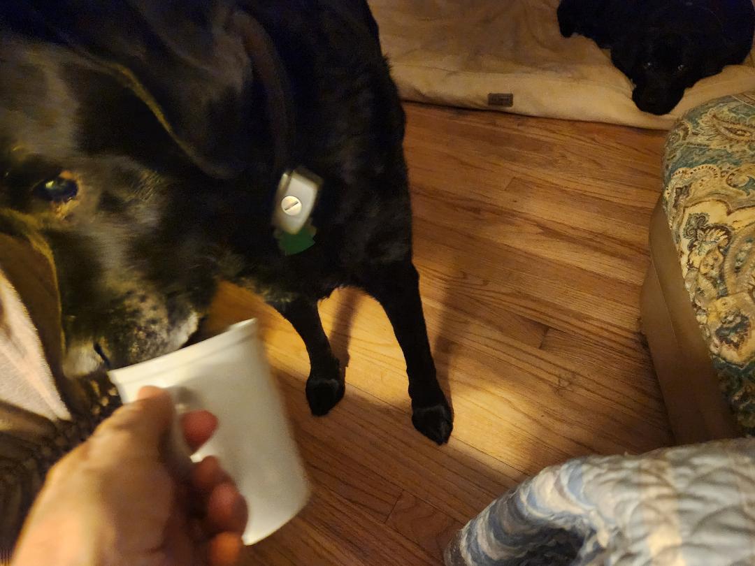 Sometimes Mom lets me drink the last bits of her coffee or her milk. That means I am not ALWAYS in trouble.